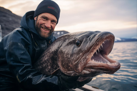 Captivating Capture: Angler Triumphs with Enormous Wolffish in the Breathtaking Waters of Lofoten, Senija, Alta - Norway
