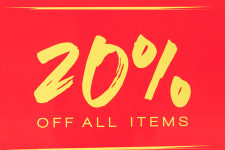 White '20% OFF' Promotional Sign on a Light Yellow Background