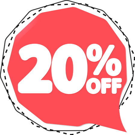 White '20% OFF' Text on a Dark Red Round Paper Note. White Background