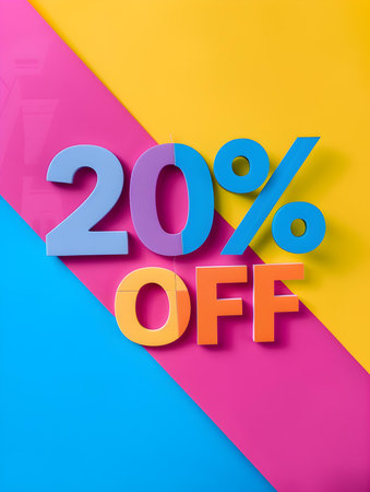 Multicolor '20% OFF' Promotional Sign on a Multicolor Background