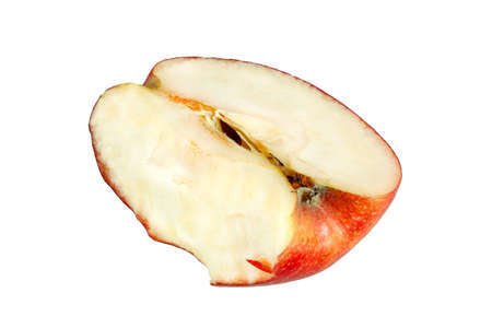 bitten wilted apple isolated on white background