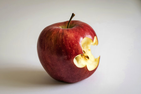 An isolated shot of a bitten red apple