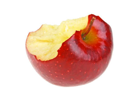 Bitten red apple isolated on white background.