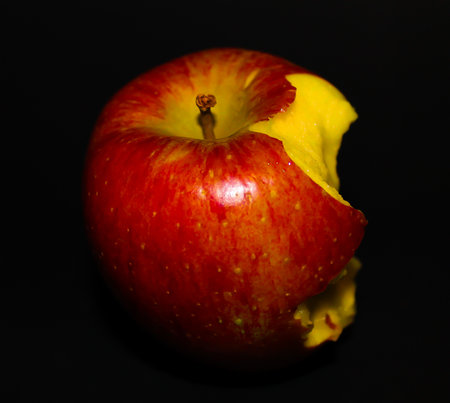 bitten yellow apple with black background