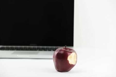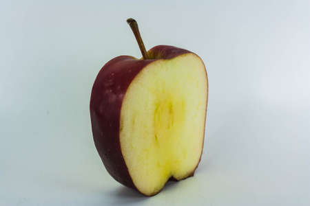 Close-up of an bitten apple on white background and copy space.