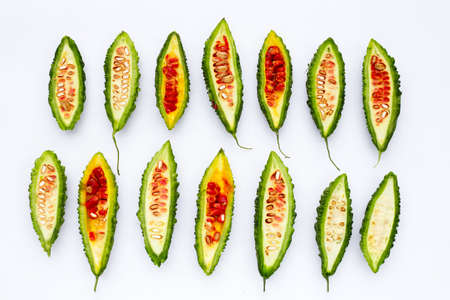 slice of balsam pear bitter melon isolated on white background