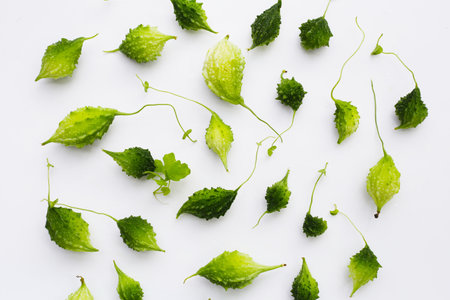 bitter gourd or bitter melon green herbal plant and vegetarian food isolated on white background