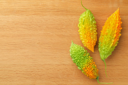 Chinese bitter melon on wood background