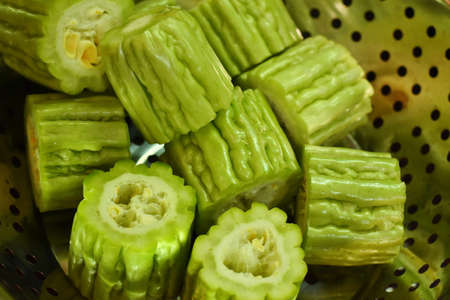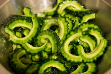 Fresh sliced bitter melon before cooking
