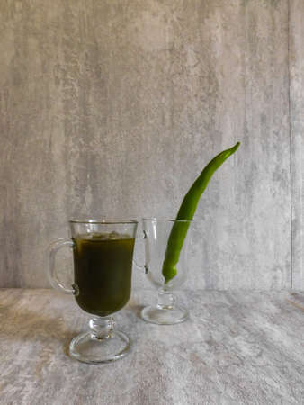 green vegetable cocktail and green chili pepper. vegan food.