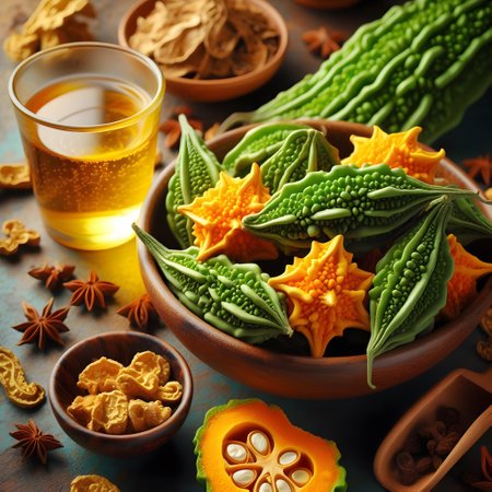 Bitter gourd and herbs for healing.