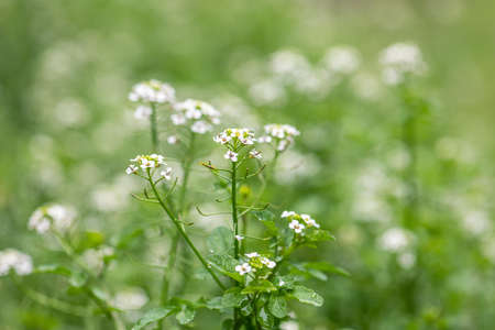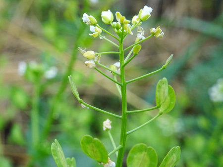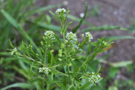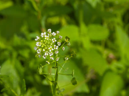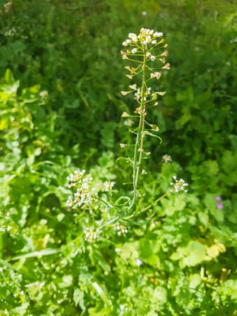 Capsella bursa-pastoris, known as shepherd's bag. Widespread and common weed in agricultural and garden crops. Medical plant in natural environment.