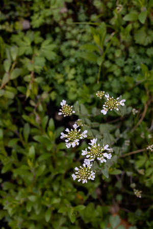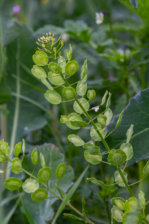 Thlaspi plant in natural conditions, a weed in agriculture close-up