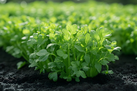 The Mustard cress at dawn soft golden sunlight kissing leaves clean air natural color