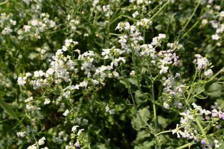 Close up of Raphanus flower. Beautiful Raphanus sativus flower in farm. Raphanus flowers. Radish flower. With Selective Focus on the subject.