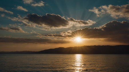 Vibrant sunset colors reflected in water, peaceful landscape, warm tones, ideal for travel, tourism, and nature documentaries