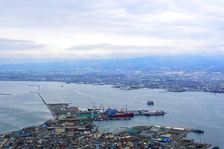 Yamaguchi, Japan - December 2, 2023 : Shimonoseki Kanmon Straits and city view