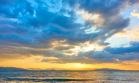 Sunset over the sea in Montenegro. Panoramic view