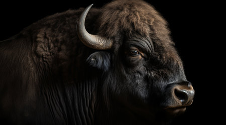 Bison on a black background, created with Generative AI technology.