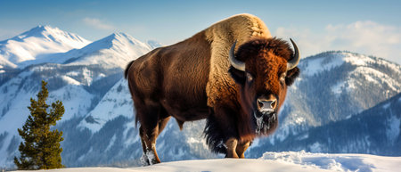Bison in Yellowstone National Park, Wyoming, USA in winter.