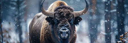 Majestic Bison in a Snowy Forest Landscape in Winter Wonderland