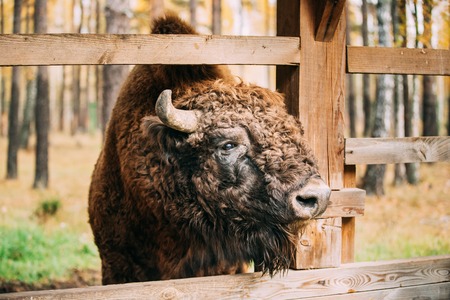 big bison head in zoo animal park outdoor