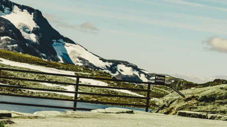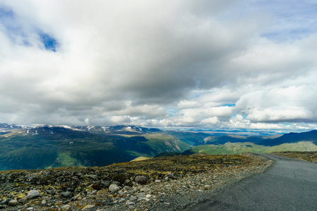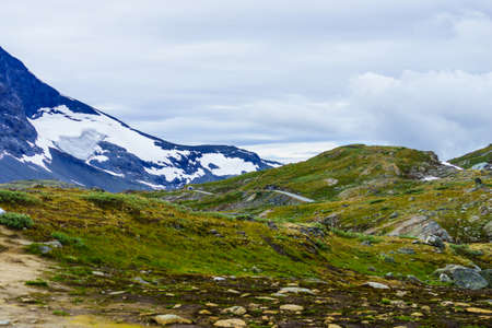 Summer mountains landscape in Norway. National tourist route 55 Sognefjellet and the highest point at Fantesteinen.