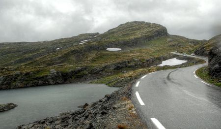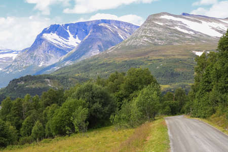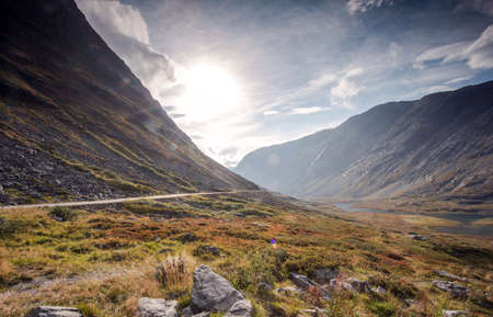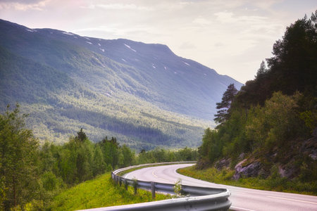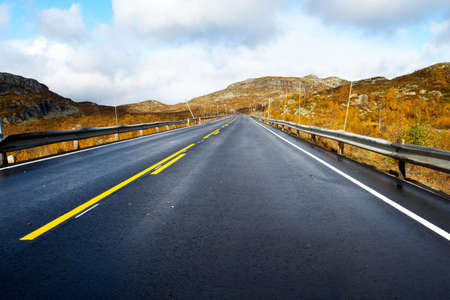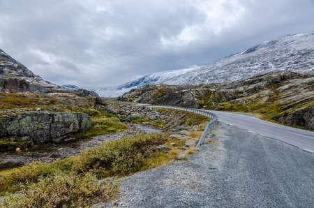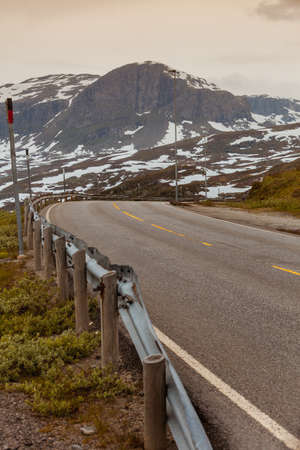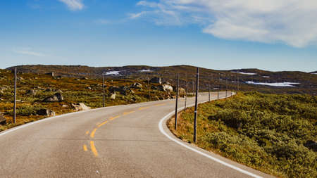 Road running through norwegian mountains. Beautiful landscape. Travel and tourism.