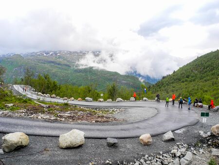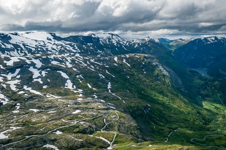 Tourism holidays and travel. Road to Dalsnibba mountain and Djupvatnet lake in Stranda More og Romsdal, Norway Scandinavia.