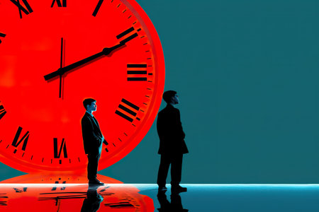 A busy transit scene showcases a superimposed clock highlighting the essence of time management amidst the hustle and bustle of urban life, filled with movement.