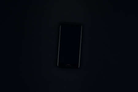 Black smartphone on a black background, template for an app or website