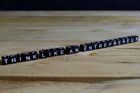 Think like an entrepreneur on wooden blocks. Motivation and inspiration concept. Cross processed image