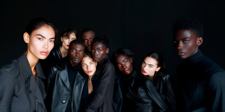 Group of african-american and caucasian women on black background