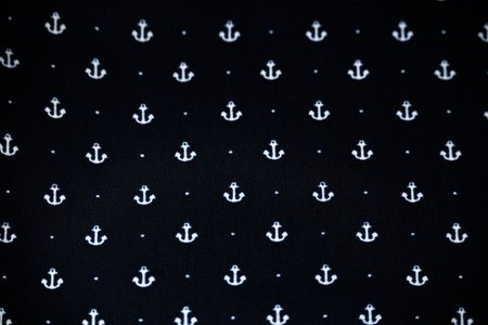 Dark navy blue textile with anchors elements. Textile pattern.