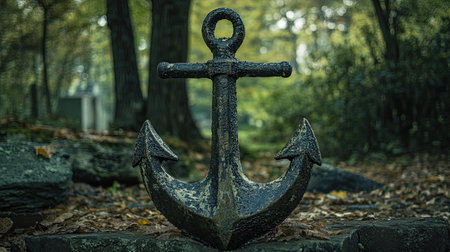 Anchor on the shore. anchor stands on the pier. marine background