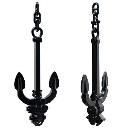 Sea anchor isolated on white. Black color metal boat equipment for safe anchorage, design element. 3d render