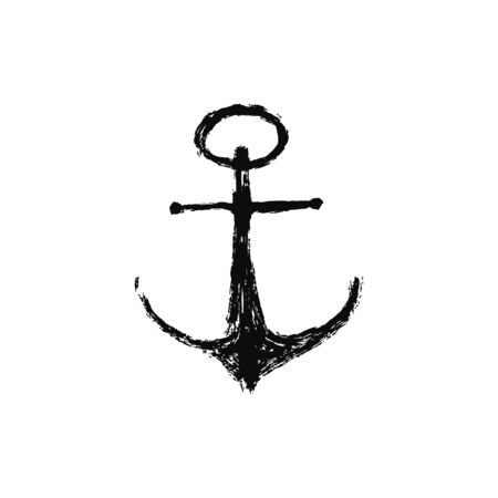 Isolated grunge drawing anchor icon. Sea boat vintage drawing manual brush ink. Background for printable products. Vector illustration