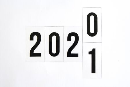 2020 change into 2021 word in wood box on a white background concept happy new year, copy space for text