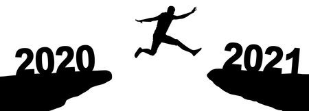 Hand turns a dice and changes the year 2020 to 2021.