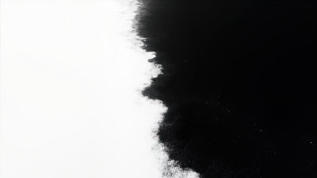 This striking abstract illustration utilizes a bold black and white contrast to create a visually compelling design. The monochrome piece features a dynamic texture, evoking a sense of separation and balance. This artistic and contemporary image, with its minimal aesthetic and use of negative space, is ideal for projects seeking an edgy and stylish touch. Its creative and elegant design makes it perfect for website backgrounds, branding materials, or graphic design projects. The dynamic and fluid form adds a unique visual appeal.