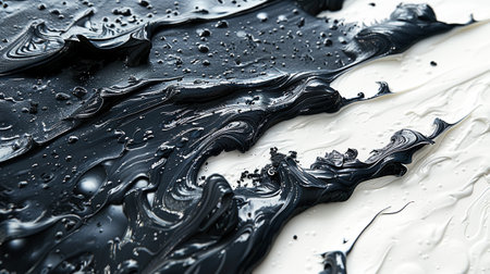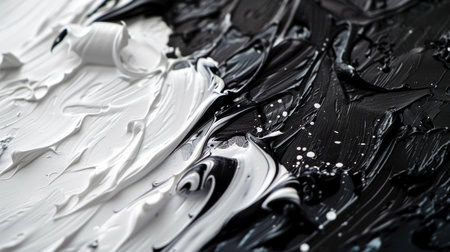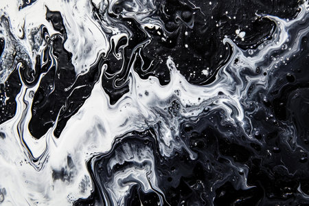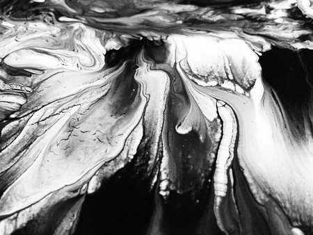 Close Up Black and White Colors Fluid Pouring Abstract Art Acrylic Painting Texture Background