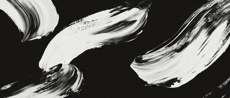 Bold and expressive brush strokes in black and white colors