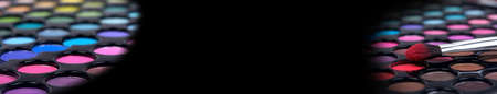 Professional make-up brush on eyeshadows palette. Closeup makeup tools. Long banner