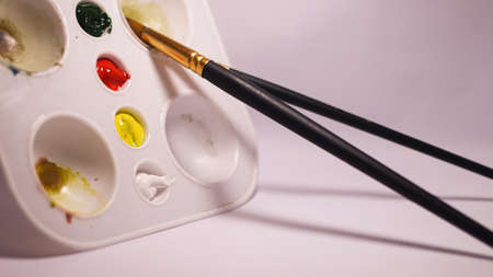 Palette and brushes Paintbrush and palette on white