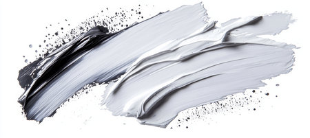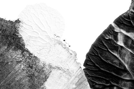 White and black oil paint brush strokes on a white background, Abstract art background.