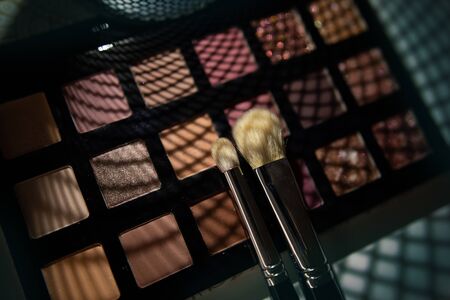 Beautiful colorful eyeshadow palette. Make-up. Tool for makeup artist. Decorative cosmetic. Brown eye shadow.