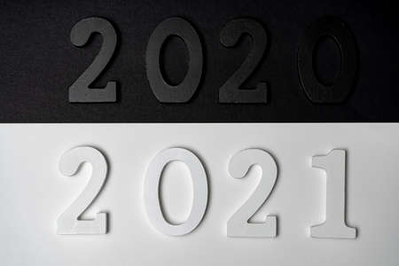 Conceptual image of the transition from a black 2020 to a 2021 depicted in white with the hope that it will be a good year. Hope concept