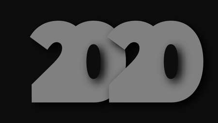 2020 Happy New Year text design. Grey numbers with shadow isolated on dark background. Vector illustration.