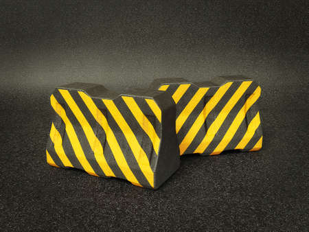 Yellow and black stripes on the concrete surface.