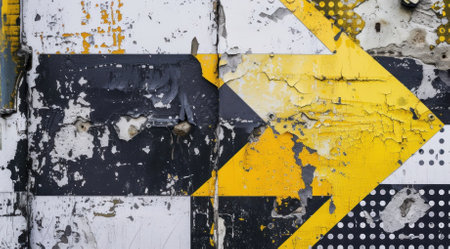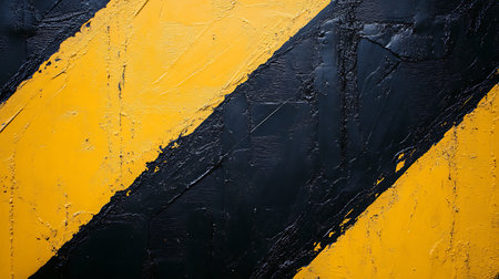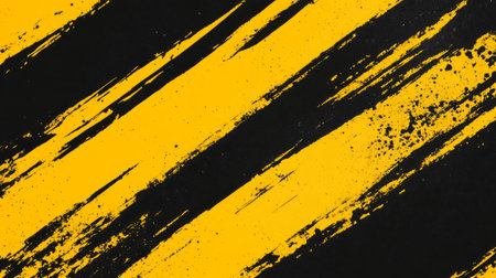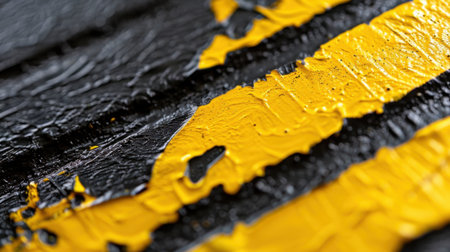 This image features bold yellow stripes painted on a textured black surface, showcasing a dynamic interplay of colors and brush strokes that evoke an industrial aesthetic. Perfect for design projects.